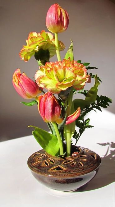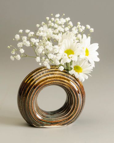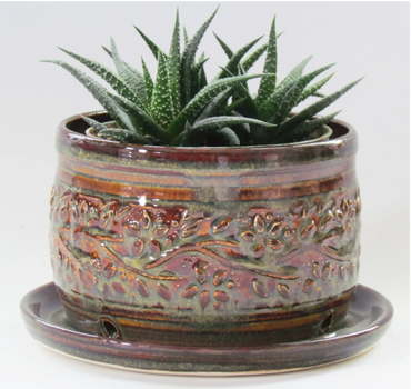 I find joy and peace when I sit down to create something new and am most content perfecting the functional pieces I bring to juried art shows.   My emphasis is on surface texture and pattern.  I carve my stamps out of clay, then roll or individually stamp each piece with loving care.  I experiment with new patterns on the mini dishes and experiment with new glazes on the mini dishes and vases...spending the time to make each one a special piece of art. My patterns are a result of my connection with nature.  My hope is that you enjoy using my pieces as much as I enjoy making each piece.